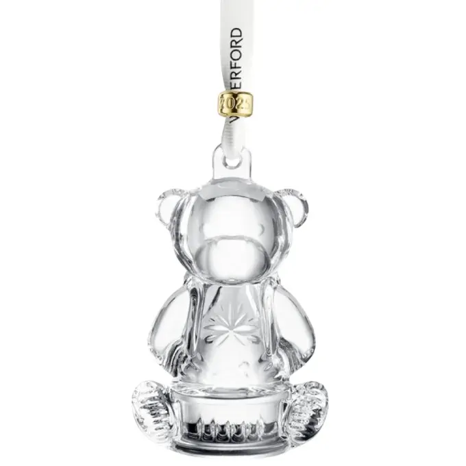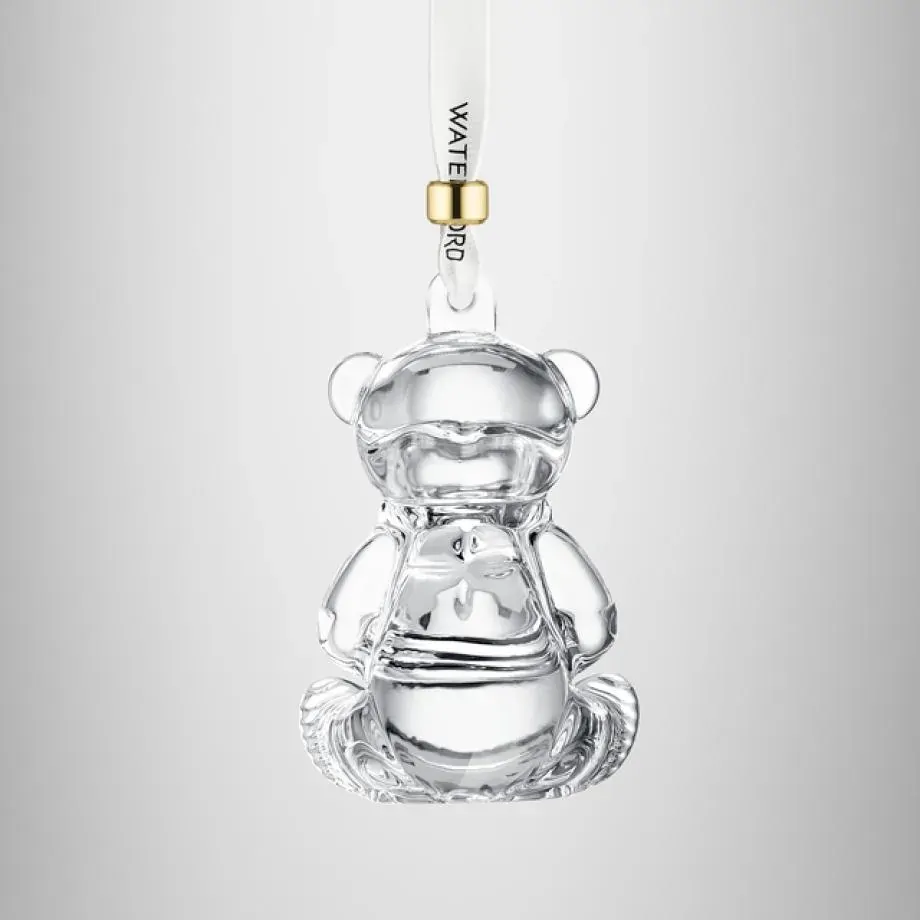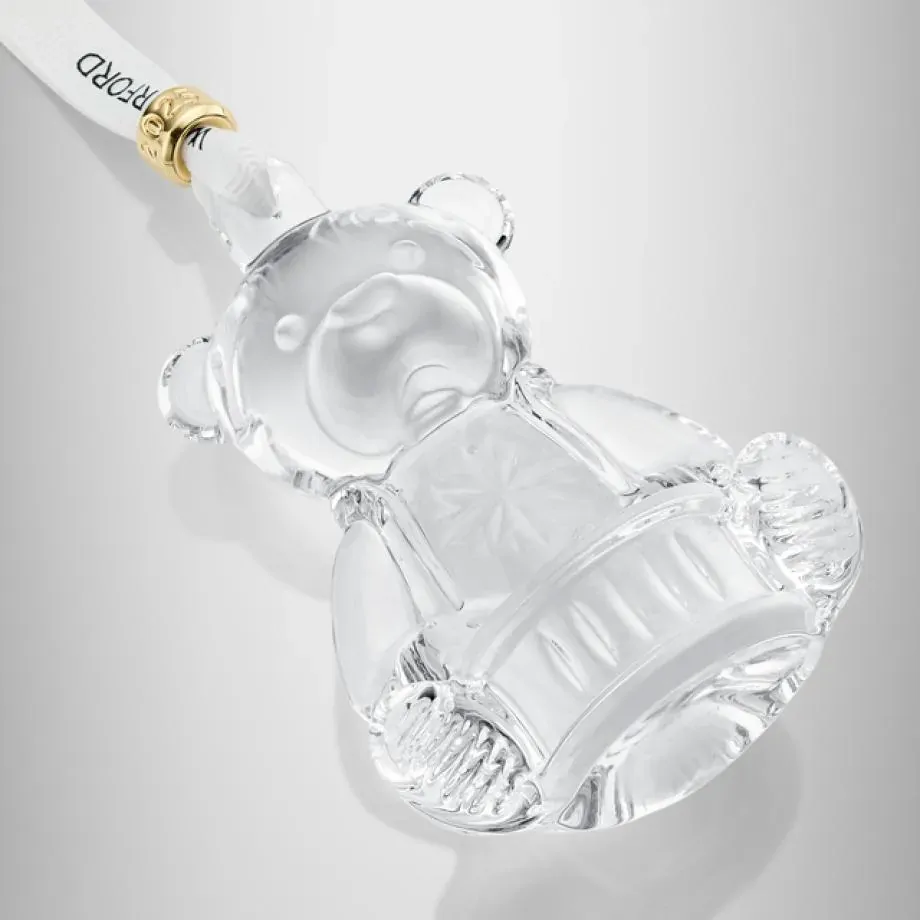 Celebrate a baby's first Christmas with the My First Bear Ornament, an adorable crystal keepsake crafted to capture the magic of childhood. This sweet bear ornament, presented in a signature Waterford box with a keepsake cloth bag, offers a truly special way to welcome a new addition to the family. Suspended from a branded ribbon with an extra ribbon for styling versatility, it features a dated gold cuff and elegant unboxing experience.