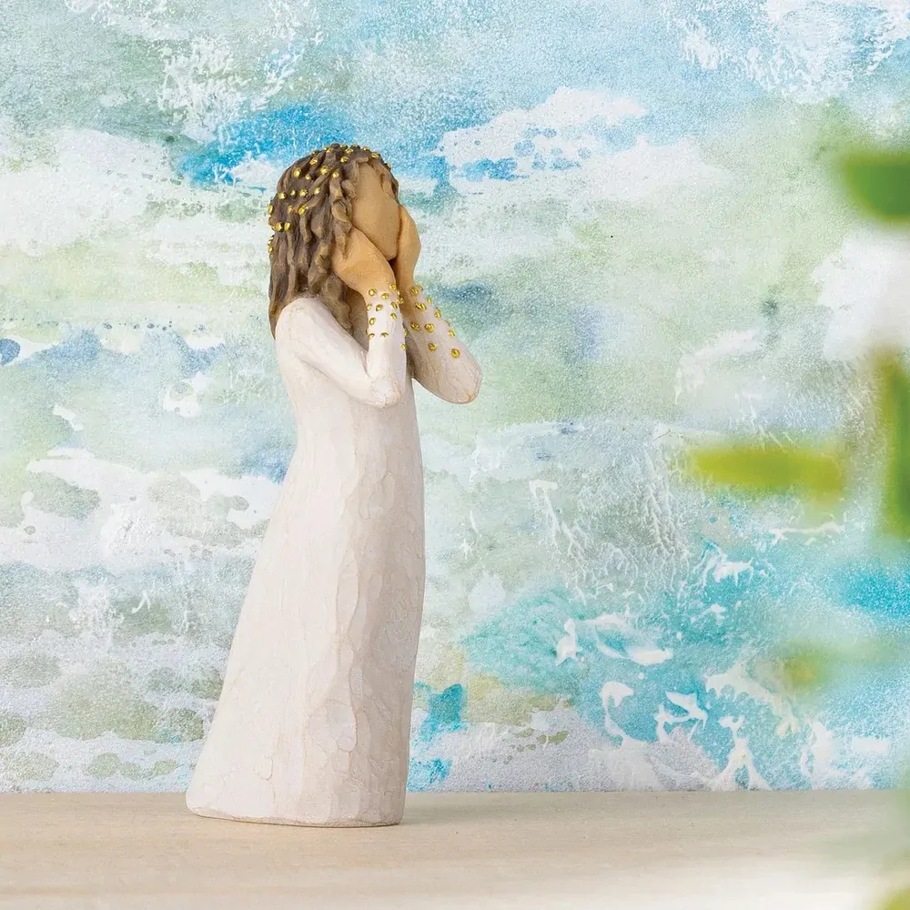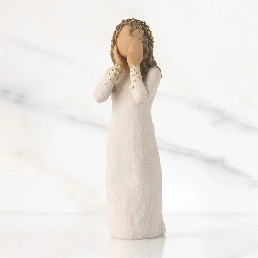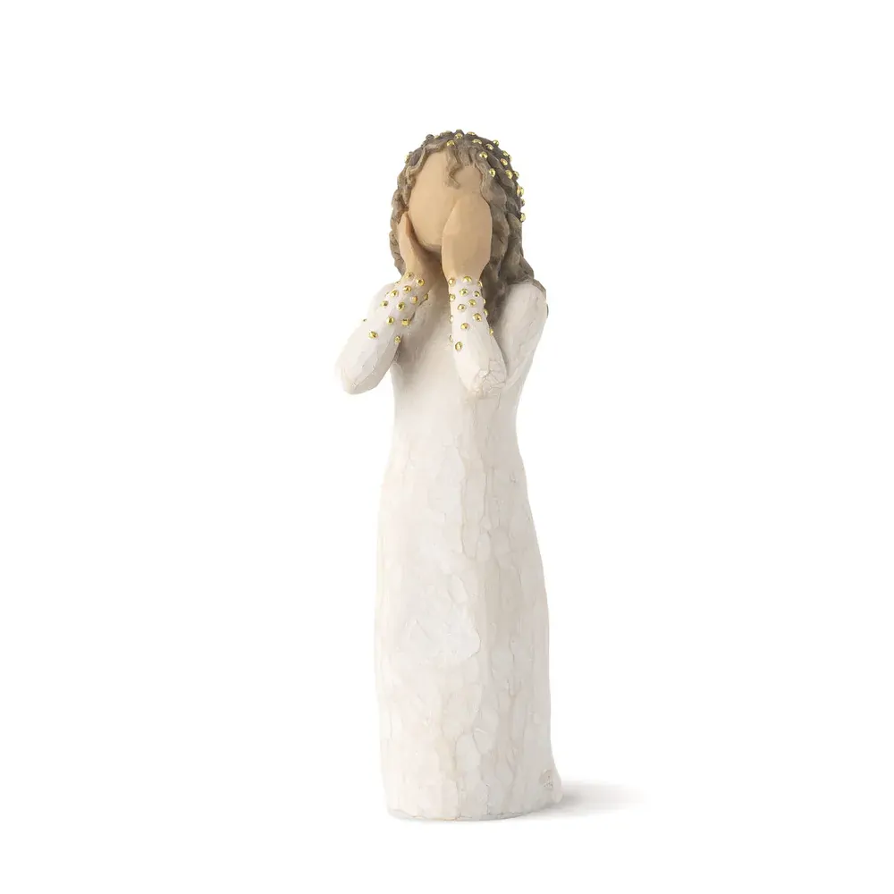Willow Tree hand-carved sculptures speak in quiet ways to heal comfort protect and inspire. Susan Lordi identifies emotions so important for us to convey and renders them in simple pure gestures. Susan says "I try to keep the interpretation of the figurines open. I hope this makes it more personal and allows the viewer to decide its meaning"