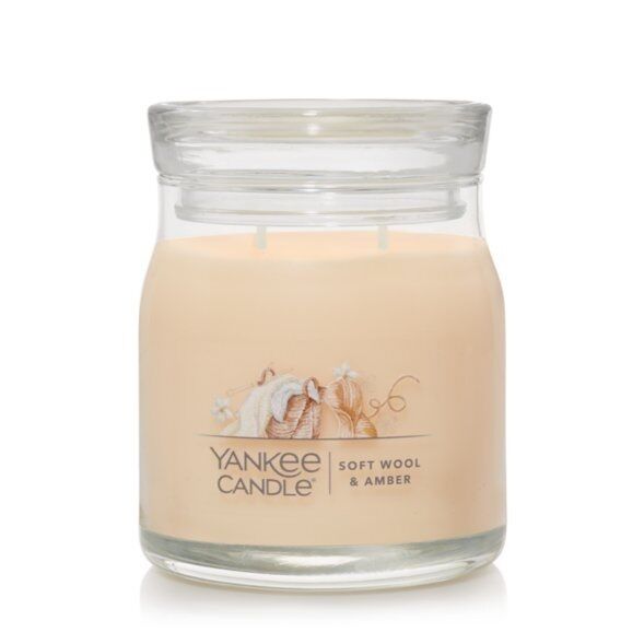 YANKEE CANDLE SIGNATURE MEDIUM JAR - SOFT WOOL & AMBER