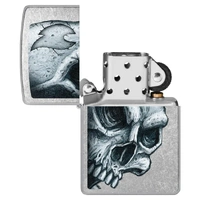 The Zippo flame icon is seemingly embossed into the fierce skull on this classic Street Chrome lighter in a 3D-looking Colour Image design.