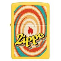 Surrounded by a hypnotic spiral, the Zippo flame icon and wordmark stand out on this classic Sunflower lighter in a mesmerising Colour Image design.